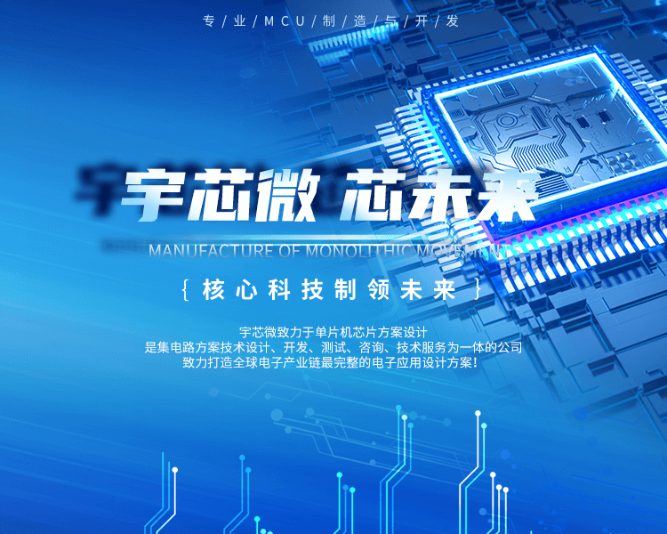 溫州宇芯微是國內一家以32位MCU/8位單片機方案開發(fā)設計及生產制造為一體的行內知名企業(yè)。擁有多達 100 種各領域的單片機/主控芯片/MCU(以下統(tǒng)稱為“單片機”)的方案開發(fā), 可為您的產品開發(fā)降低成本最高可達 30%,在產品研發(fā)領域中,我們所把控的資源將是您選擇的理由!公司的單片機通過了SGS 認證,在產品的安全性有保障,我們可以承諾產品的優(yōu)良率高于99.7%,如超過經過技術檢測屬實,我們會補足訂單的芯片數量,并承擔產品運輸的所有費用。